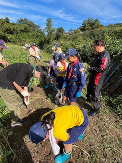 カブスカウトは泥やミミズにもめげず、しっかり芋を掘り、焼き芋の準備に大忙し!